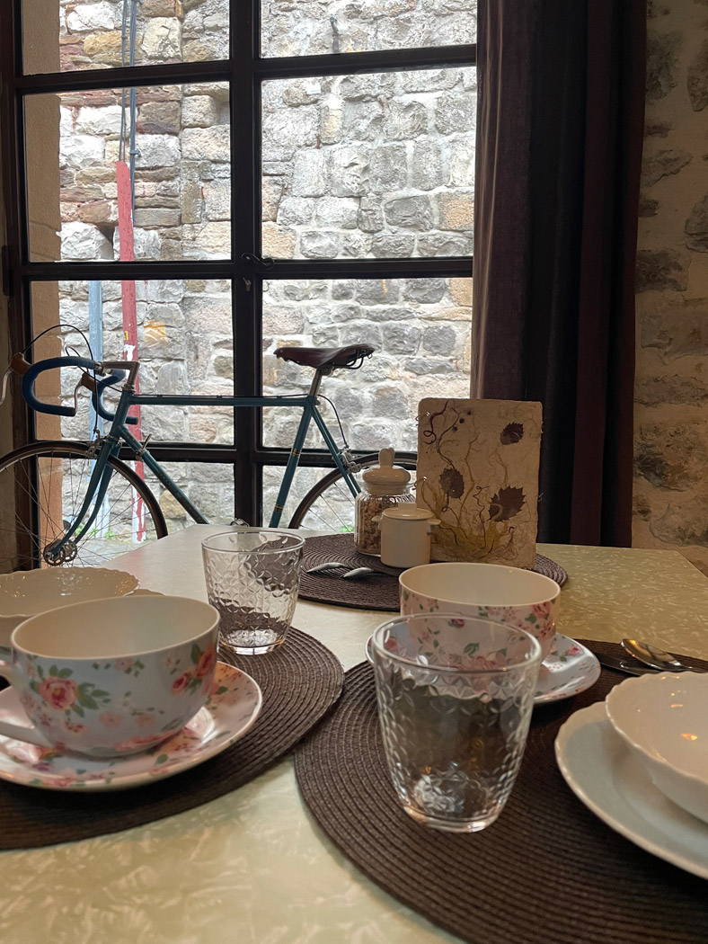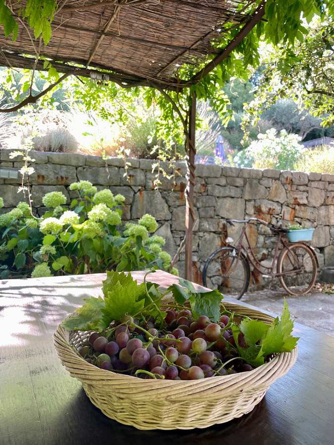 Next is a lovely arbour offering protection from the sun when the shade of the centuries-old mulberry trees is insufficient. Breakfast served here.