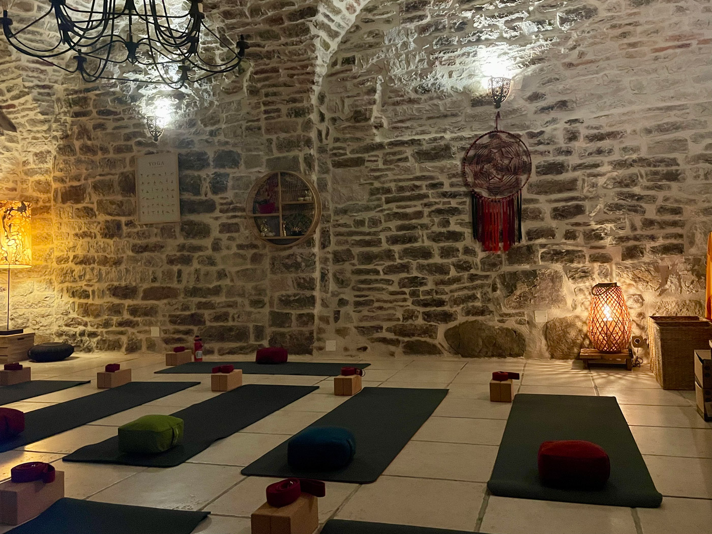 It is on the deck with a view over the village of character Naves or in a magnificent vaulted room with a mineral and energetic atmosphere, that you can, according to the programs, practice QI gong, yoga, Pilates, relaxation and meditation.